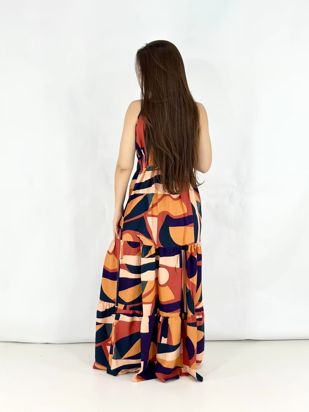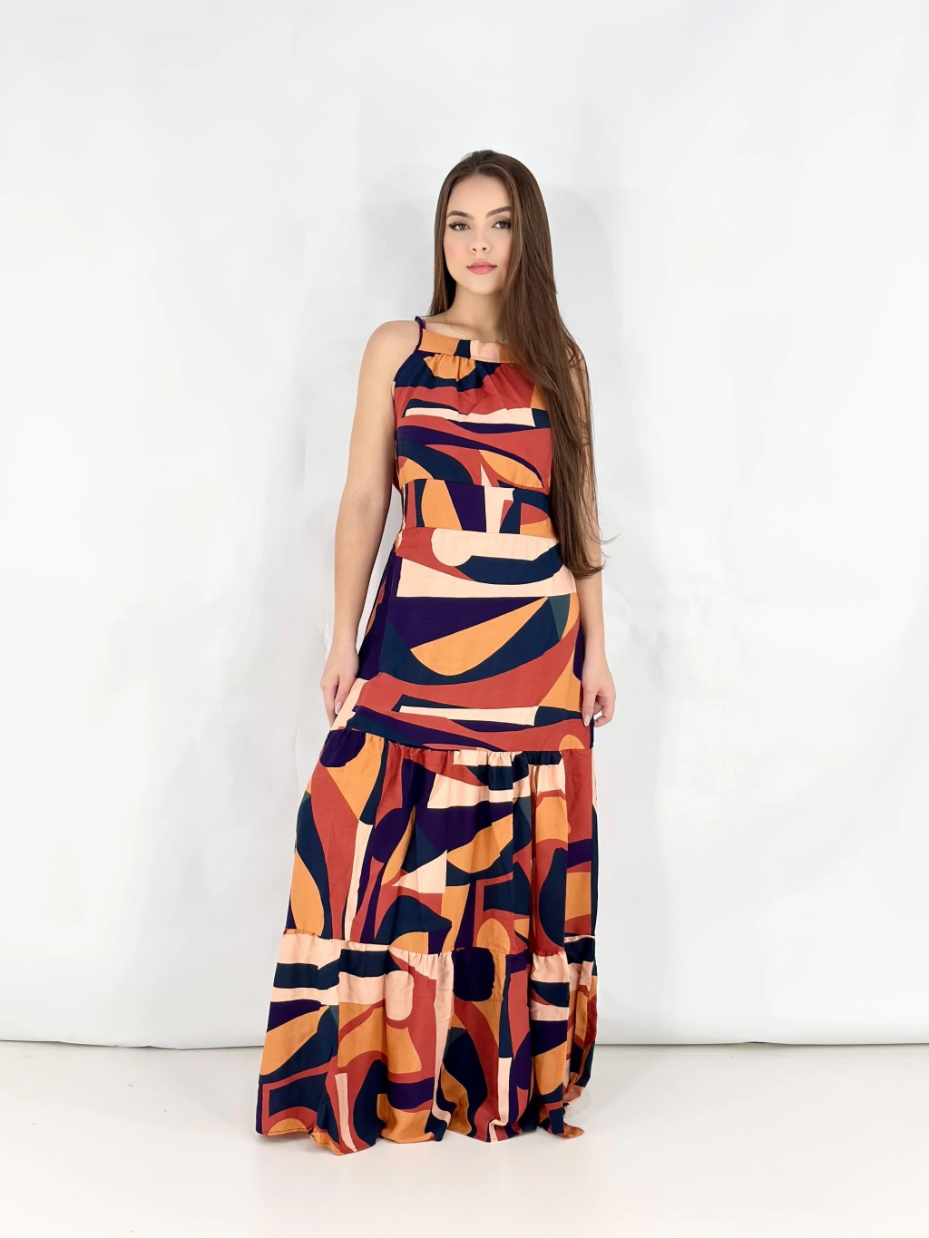 VLCAAC23 - VESTIDO LONGO CINTIA ALCINHA AMARRACAO ESTAMPADO