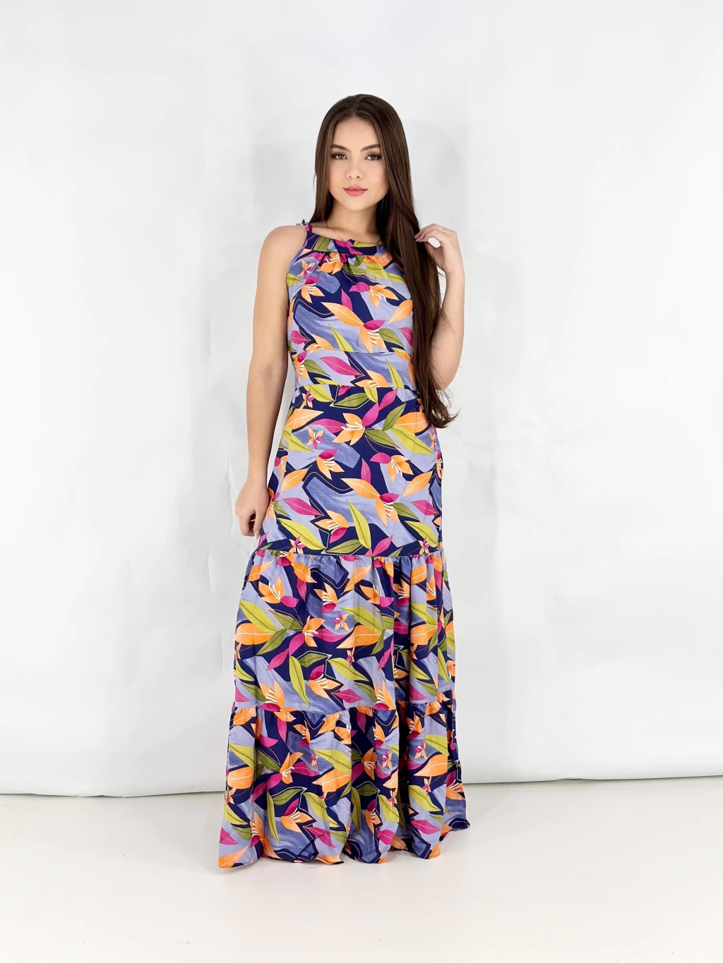 VLCAAC25 - VESTIDO LONGO CINTIA ALCINHA AMARRACAO ESTAMPADO