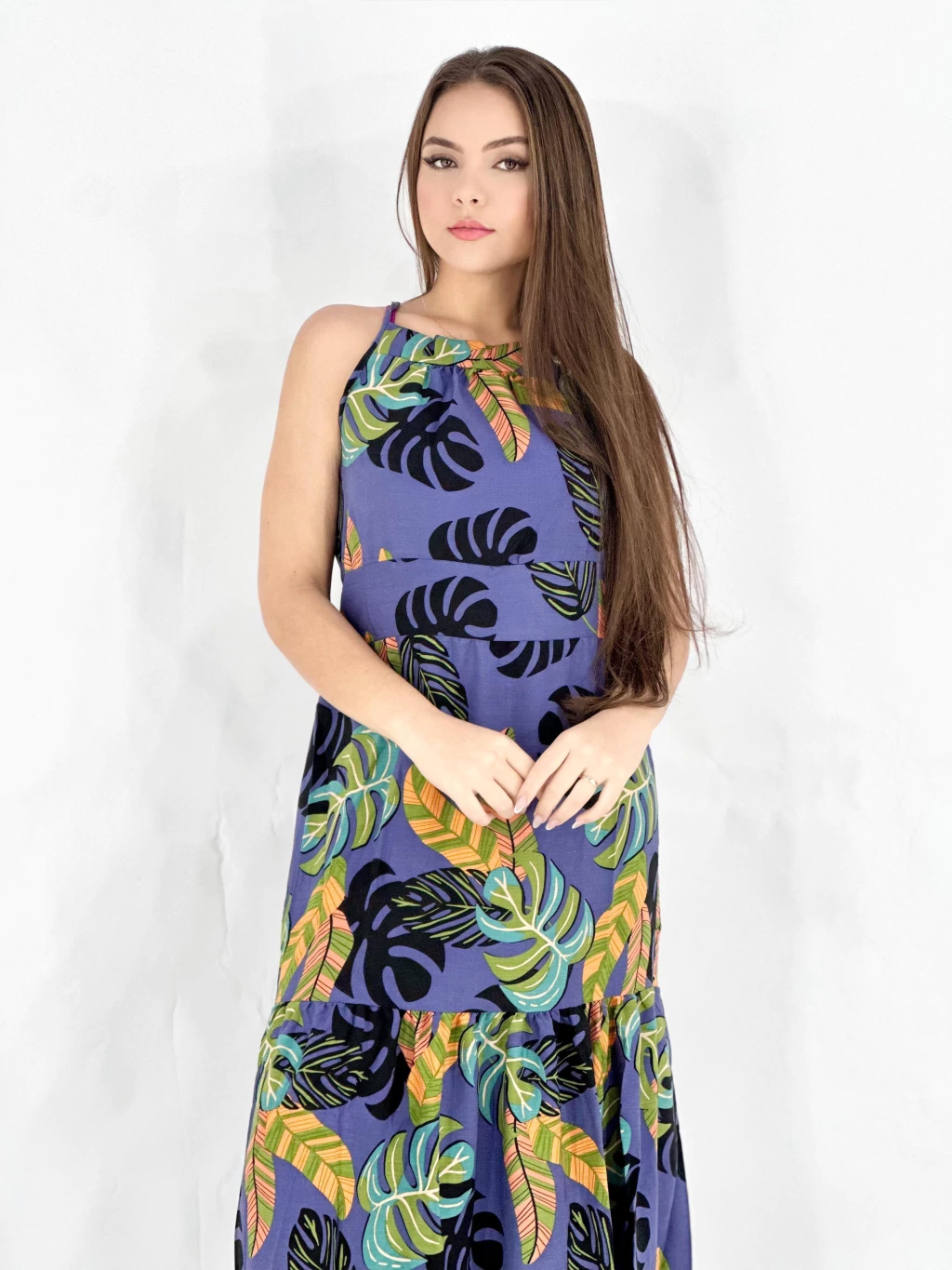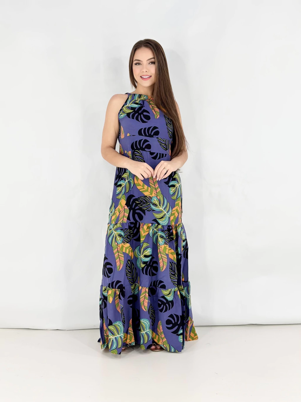 VLCAAC27 - VESTIDO LONGO CINTIA ALCINHA AMARRACAO ESTAMPADO