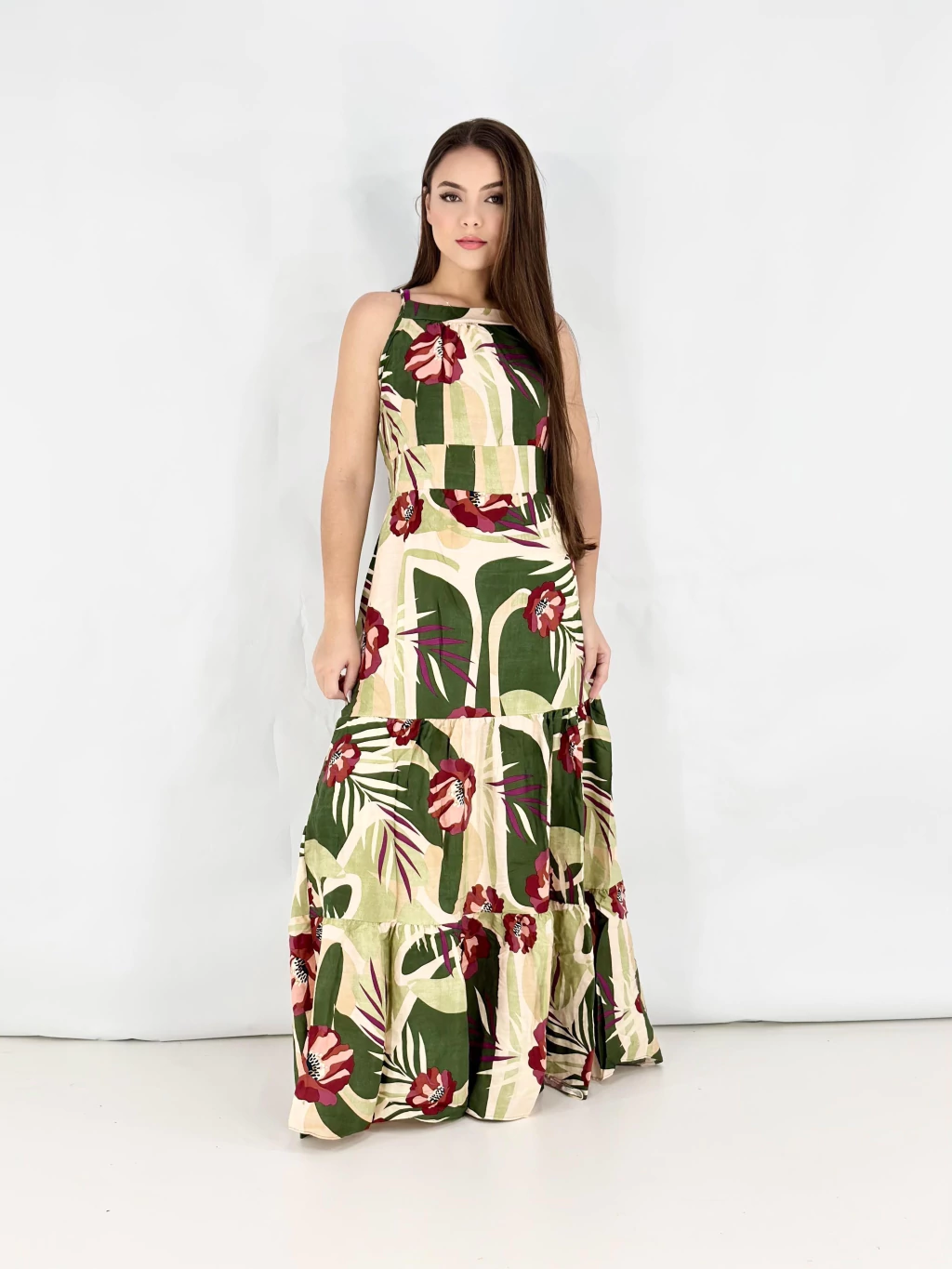 VLCAAC28 - VESTIDO LONGO CINTIA ALCINHA AMARRACAO ESTAMPADO