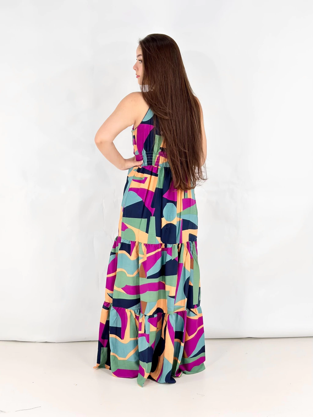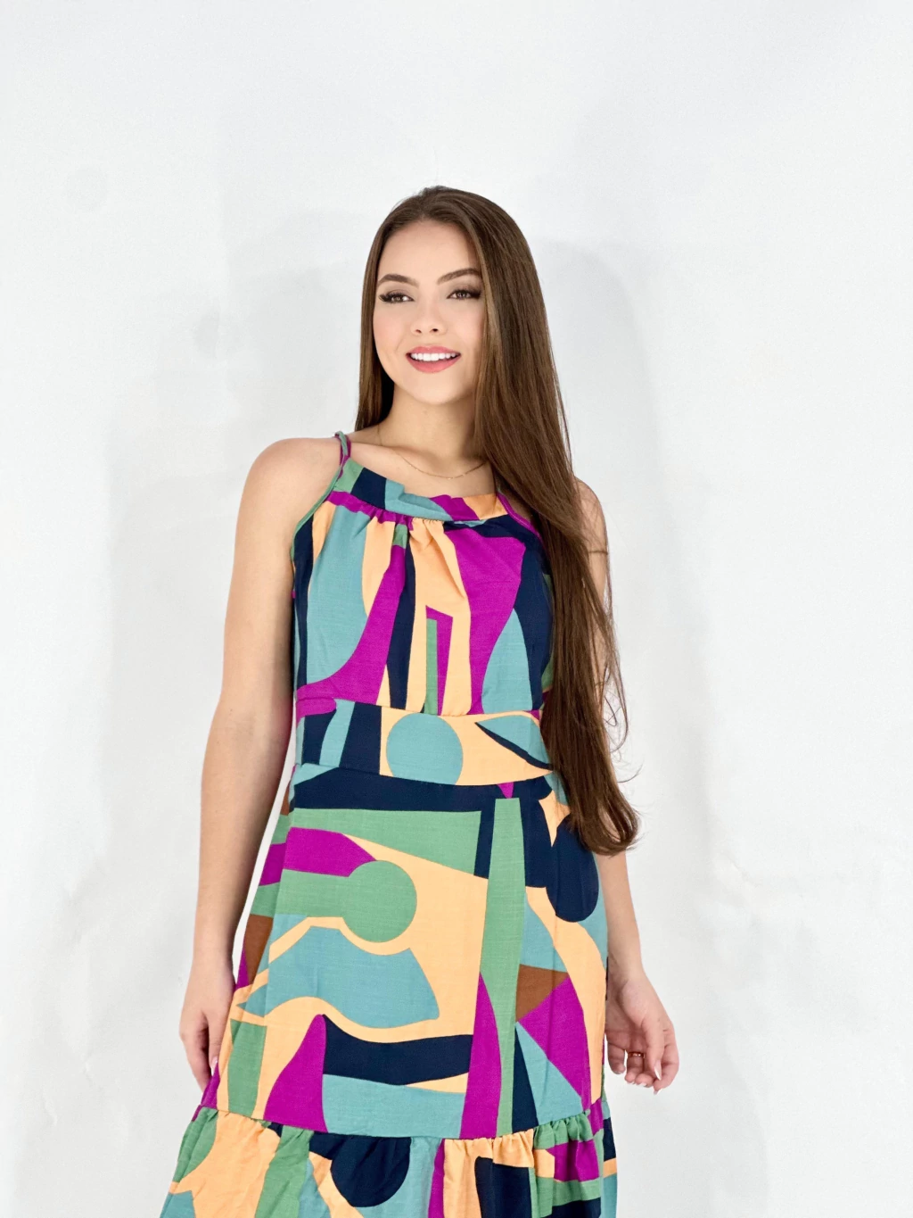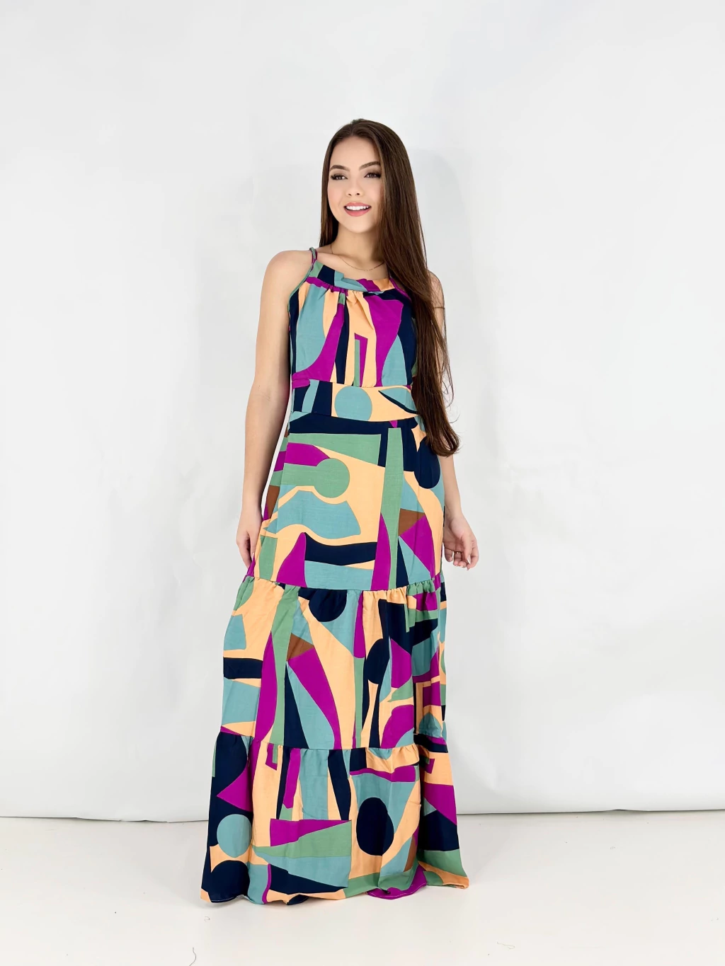 VLCAAC30 - VESTIDO LONGO CINTIA ALCINHA AMARRACAO ESTAMPADO