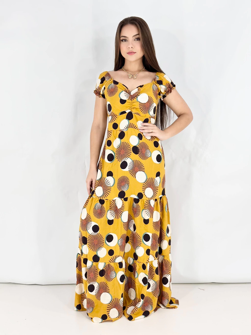 VLCCFC2 - VESTIDO LONGO CINTIA CIGANA FRANZIDO ESTAMPADO