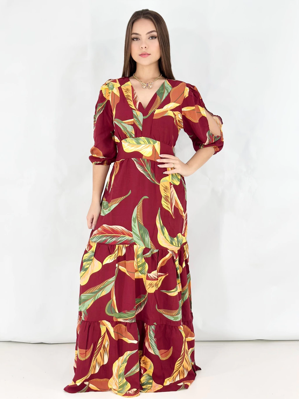 VLCVEC7 - VESTIDO LONGO CINTIA GOLA V ESTAMPADO