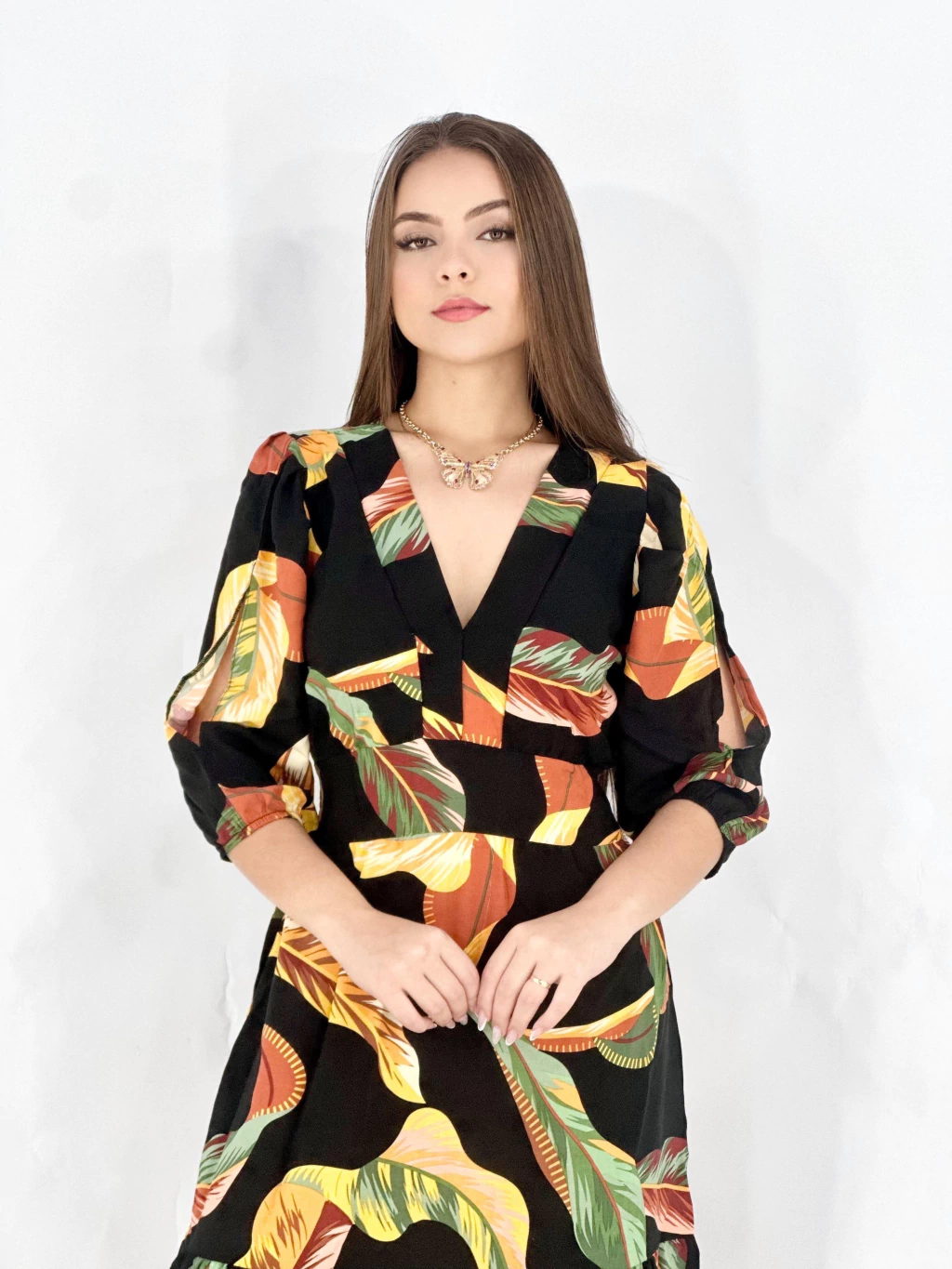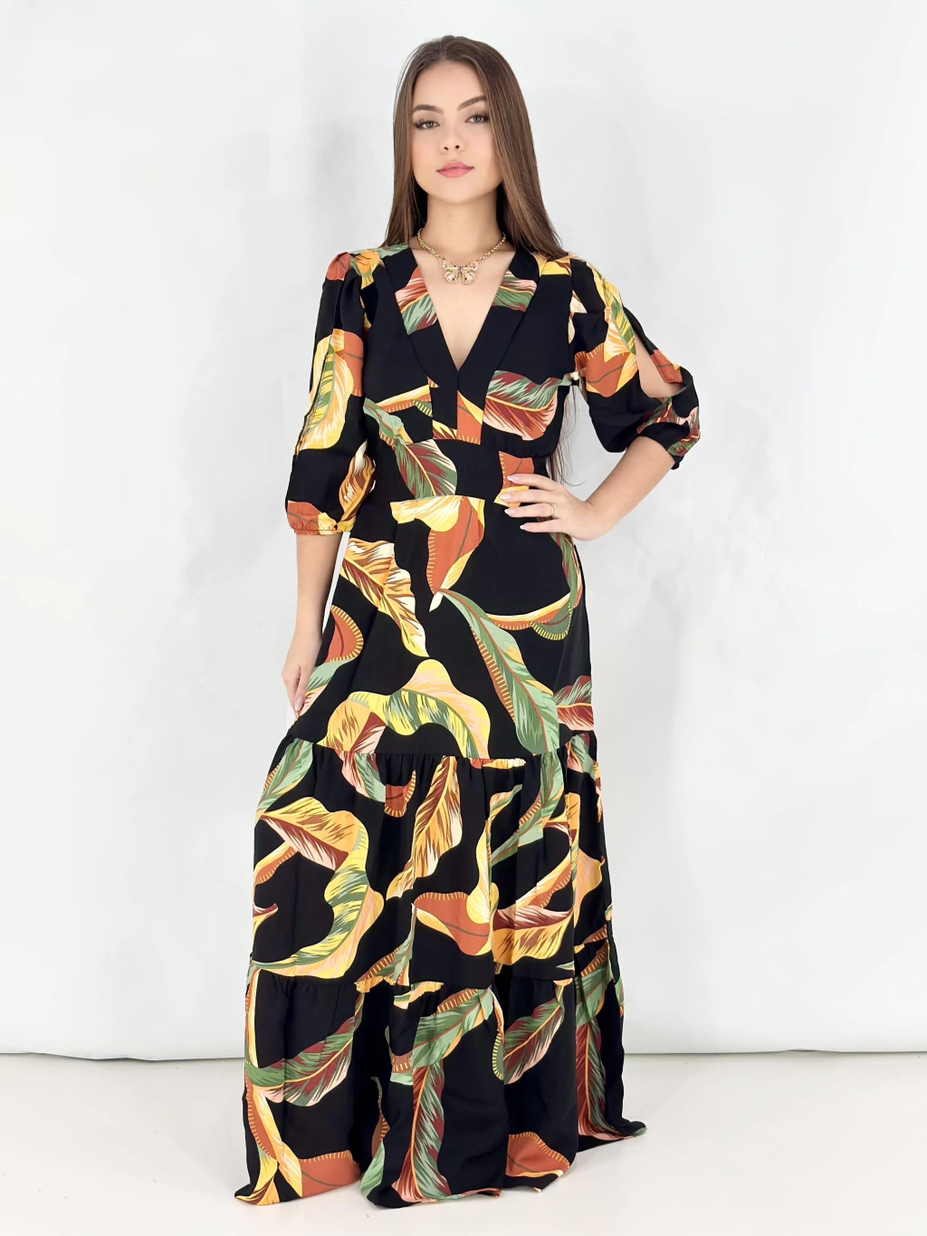 VLCVEC8 - VESTIDO LONGO CINTIA GOLA V ESTAMPADO